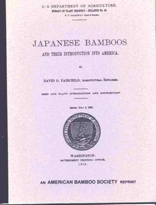 The following list includes books,catalogues, newsletters and other printed matter concerning bamboo and Japanese Gardening, and pandas. Most of these titles are currently out of print, but not all and the majority of these are one of a kind and are limited to stock on hand. Included here are original printed publications, a few reprints and a few photo copy reprints. Each listing has the book title, author, total pages, content description (Example: text, 4 B/W photographs, 12 color photographs, maps and drawing. Technical information, readable and useful.), size of book and price.